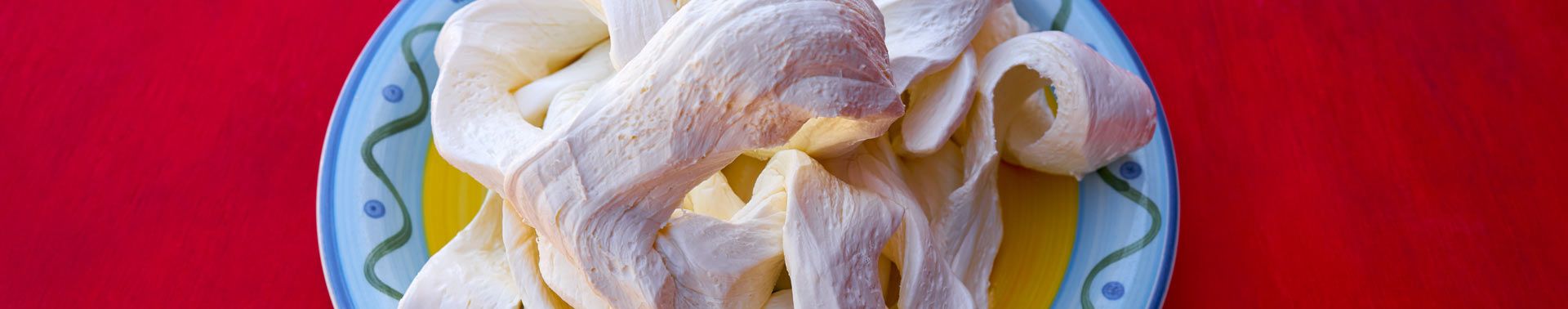 Long ribbons of cheese are rolled up to form a ball to make this traditional mozzarella-like cheese. The balls of cheese are used shredded to top tostadas and little appetizers (antojitos) or may be sliced and added to quesadillas or chile rellenos. Look for a spicy versions too which is flavored with cherry.